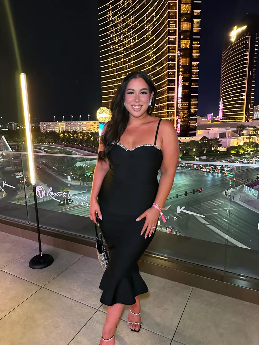 If you know me, you know I love a bandage dress! The structure and support accentuate curves in the best way and the rhinestone details add just the right amount of sass. This is the dress you choose when you want to feel snatched, secure, and confident on the dance floor!